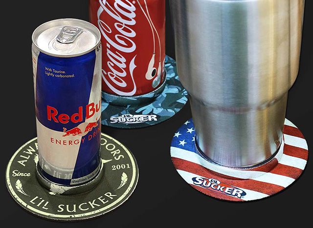 L’il Sucker® keeps your drink firmly planted where you want it. Just slip it on your can, bottle, tumbler, from the bottom up, set it on any smooth surface, and let L’il Sucker do it's magic.